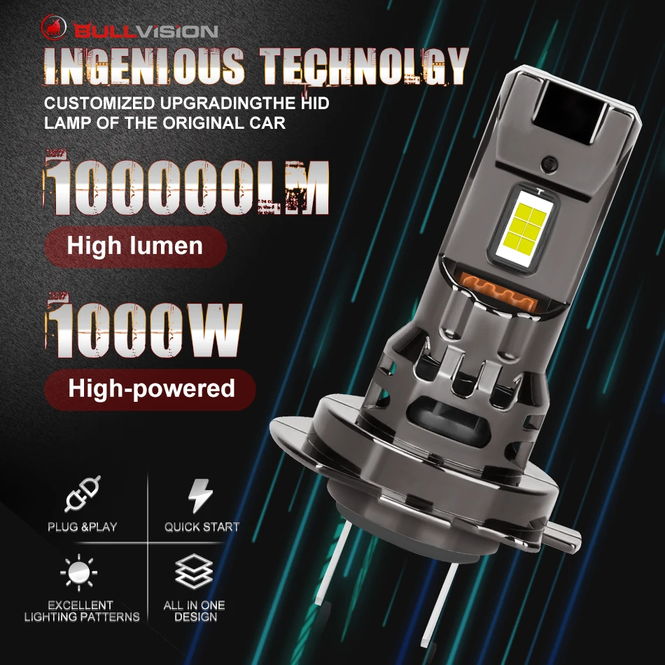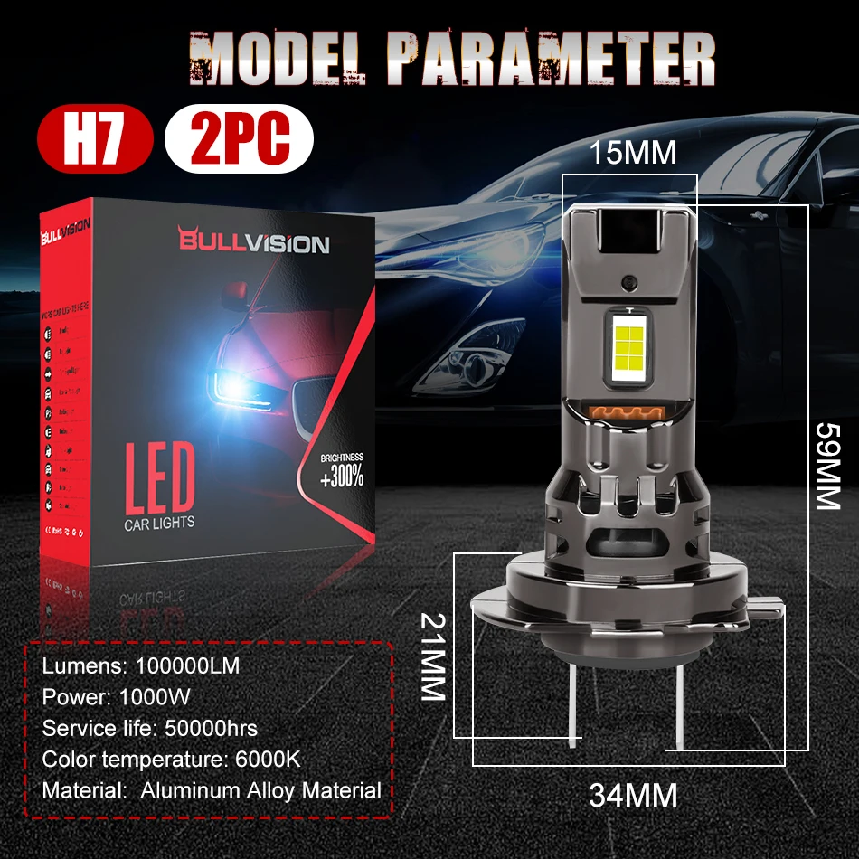 Transform your driving experience with the Dualvision 2Pcs 1000W Turbo H7 LED CANBUS Mini Headlight Bulbs. Designed to elevate your vehicle's lighting to a whole new level, these wireless headlight bulbs emit a stunning 6000K white light that enhances visibility and safety on the road.